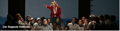 Our Dutchman comes on the scene, oddly staged on the platform below despite the little ship being raised above - his ship is supposed to be bigger and therefore wouldn't he be above? Danish baritone Johan Reuter laments his story of damnation to moving lyric of Wagner's music with a strong voice and subtle charisma fitting of this tormented hero. His yearns are convincing and we empathise with his instantly with his woes.